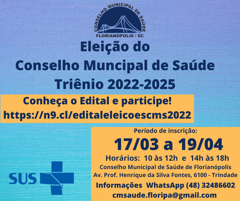Eleições para o Conselho Municipal de Saúde de Florianópolis Triênio 2022-2025 Inscri...
