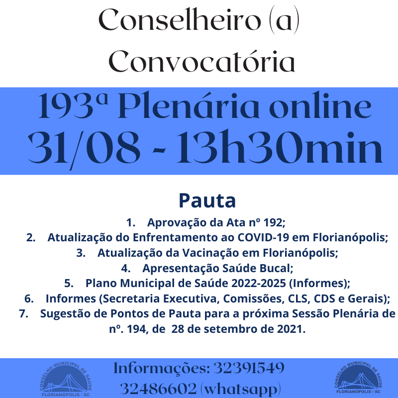 CONVITE 193ª PLENÁRIA DO CONSELHO MUNICIPAL DE SAÚDE